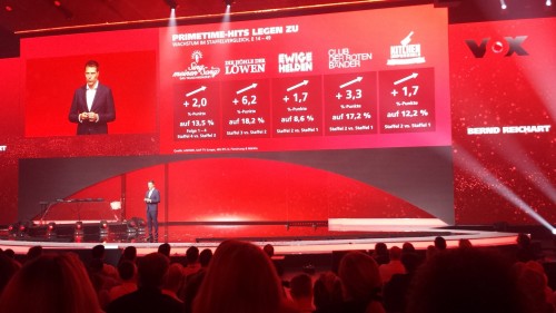 in genau diesen Geschäftsbereich blicken. Die Serie basiert auf einer israelischen Idee. Überhaupt kam das Screening von VOX sehr frisch daher, schließlich hatte man den potentiellen Werbekunden einiges zu verkaufen. Stolz präsentierte Senderchef Bernd Reichart die Steigerungen, die Erfolgsmarken wie «Sing meinen Song», «Die Höhle der Löwen» und Co. zuletzt verbuchen konnte. Anders als ProSieben und RTL, die ihre jüngsten Quotenverluste allerhöchstens am Rande thematisierten, zeigte sich VOX selbstbewusst und gestärkt.