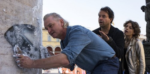 Da verwandelt sich das Jugendschlafzimmer in eine Müllkippe von der Größe Mittelerdes, und durch zügige Schnittarbeit bricht Haußmann die üblichen familieninternen Verhandlungsgespräche über Töchterchens erste Party ab, um nach dem heiteren, ersten Hickhack direkt zum unmittelbaren Vorlauf der Party zu springen. Wo sich der Familienvater dann mit Waschbären rumplagt, während sein Altrockerkumpel (Detlev Buck) Panik schiebt, heutige Kinder würden zu langweilige Feten schmeißen. Und an anderer Stelle zaubert der übereifrige Vater aus der Nachbarschaft (Justus von Dohnányi) halt flott einen Laubbläser herbei, einfach um zu unterstreichen, wie abartig perfekt und dauervorbereitet er ist.