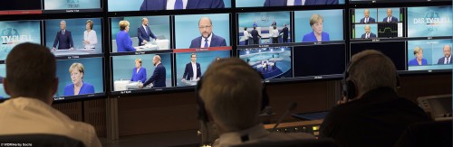 Das mit Spannung erwartete Duell zwischen Angela Merkel und Martin Schulz wurde am Sonntagabend ab 20:15 Uhr von durchschnittlich 16,11 Millionen Menschen verfolgt, womit es sich zwischen Merkels Duelle gegen Frank-Walter Steinmeier und Peer Steinbrück einordnete (siehe Infobox). Für den Quotenanalysten aber fast spannender ist die Verteilung des Publikums auf die gleich vier Sender, die parallel das Duell ausstrahlten. Mit 9,33 Millionen versammelte sich mehr als die Hälfte aller Zuschauer beim Ersten Deutschen Fernsehen, ein weiteres knappes Viertel erreichte das ZDF mit 3,72 Millionen, während die beiden Privaten mit 2,13 Millionen (RTL) und 0,93 Millionen (Sat.1) kaum noch nennenswerte Stücke des Kuchens abkriegten.