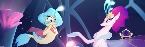 Prinzessin Twilight Sparkle steckt mitten in den Vorbereitungen für das große Freundschaftsfestival, als der mächtige Sturmkönig und seine Kommandantin Tempest Shadow mit einem gemeinen Plan in Ponyville einfallen. Tempest war einst selbst Bewohnerin von Equestria, doch als Kind verlor sie ihr magisches Horn und damit auch den Glauben an die Macht der Freundschaft. Um ihre Zauberkraft zurückzugewinnen, kämpft sie jetzt an der Seite des furchteinflößenden Sturmkönig, der den Prinzessinnen von Ponyville all ihre magischen Fähigkeiten rauben will. Aber so einfach geben Twilight und ihre fünf besten Freundinnen nicht auf! Sie ergreifen die Flucht, um Hilfe zu holen. Mit Tempest immer dicht auf den Fersen, schlagen sie sich mit einem zwielichtigen Kater namens Capper herum, fliegen mit dem Luftschiff von Käpt‘n Celaenos schrägen Vögeln und landen schließlich im glitzernden Unterwasserkönigreich Seaquestria. Werden die Ponys dort Verbündete für den Kampf um ihr Zuhause finden?