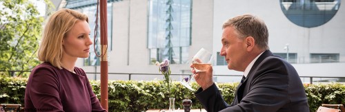 Donnerwetter. Dialogzeilen sind das, Aaron Sorkin würde wohl eher das Tipp-Ex aussaufen, als sie niederzuschreiben. Doch die Einfachheit und Borniertheit sind hier Konzept. Völlig unmöglich ist also auch, dass die Freund- und Feindschaften und persönlichen Verflechtungen in dieser Serie aus politischen Anschauungen, strategischen Konstellationen oder einer intellektuellen Sympathie erwachsen. Stattdessen muss der Konflikt zwischen der führenden Abgeordneten Blumenthal und dem hinterlistigen Wirtschaftsminister dadurch unterfüttert werden, dass die Beiden eine alte Bettgeschichte verbindet.