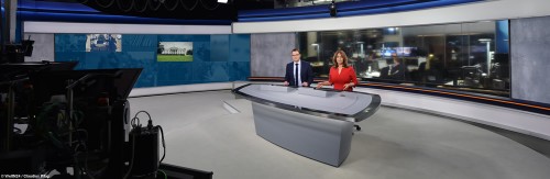 Tatsächlich erlaubt der neue Tisch gerade auch in Breaking-News-Situationen, dass mehr Personen im Studio agieren können. So ist es z.B. möglich, dass neben den beiden Moderatoren unsere Social-Media-Kollegen im Studio sind und noch zwei externe Gäste dazukommen.