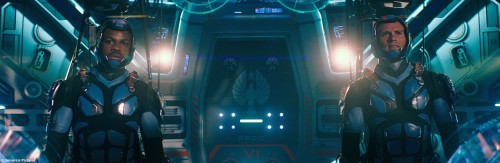 Der Kabbelei zwischen den beiden Männern, die im Ernst der Lage natürlich schon bald wieder zusammen halten, fehlt es zwar an emotionaler Unterfütterung (beide bleiben bis zuletzt vor allem auf ihre körperlichen Fähigkeiten als Jaeger-Rekruten reduziert und sind hier und da Stichwortgeber für einen coolen One-Liner), doch für die ohnehin recht schematische Story reicht das, um den Film mit Personality zu versorgen. Die dritte wichtige Figur ist indes die von Newcomerin Amara Namani verkörperte Cailee, die bei ihren älteren Kollegen schon mal ordentlich den Ton angibt und als toughes Hacker-Girl ein gutes Leinwanddebüt abliefert.